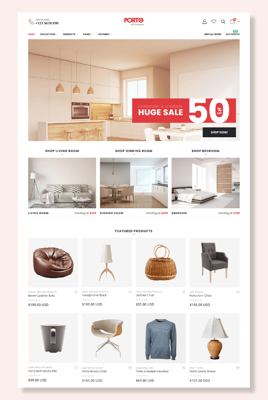 اختر عرضًا توضيحيًا واحدًا من بورتو ولا يتطلب الأمر سوى نقرة واحدة لجعله عرضًا لك. يوجد حاليًا أكثر من 20000 موقع ويب يستخدم أكثر من 30 نموذجًا من نماذج بورتو لبناء واجهة متجر التجارة الإلكترونية الخاصة بهم. تم تصميم عروضهم التوضيحية من قبل كبار الخبراء في التجارة الإلكترونية وتم تحسين جميع العروض التوضيحية بالفعل للسرعة وتحسين محركات البحث ، حتى يتمكنوا من ضمان المبيعات في متجرك. إلى جانب ذلك ، تركز جميع هياكل هذا الموضوع على الأداء لضمان أن تكون سرعة الصفحة فائقة السرعة.