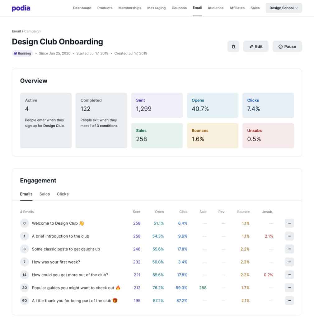 تفتقد Podia إلى الميزات الرئيسية مثل مسارات التحويل والحملات التي تساعدك في مضاعفة أو 5 أضعاف أو حتى 10 أضعاف في عملك.