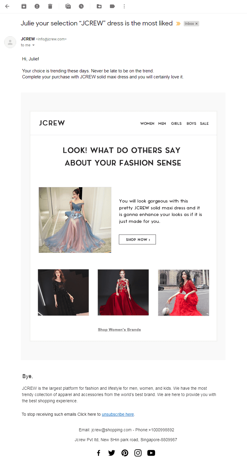 في هذه الأثناء ، تعد إعادة الاستهداف عبر البريد الإلكتروني إحدى الطرق التي أثبتت جدواها والتي تساعد في استعادة عربة التسوق المهجورة. بالإضافة إلى أنه يأتي مع أفضل أدوات / ملحقات استرداد سلة التسوق المهجورة مع دليل خبير ونطاق واسع للتخصيص. يتيح ذلك إرسال رسائل البريد الإلكتروني في الوقت المناسب ، وتصميم محتوى جذاب ، وقبل كل شيء ، نهج شخصي.