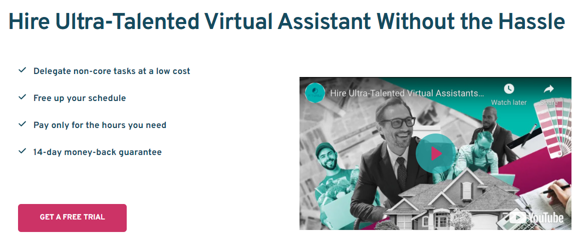 تحظى Virtalent بثقة العديد من الشركات ذات السمعة الطيبة ، ولديها عدد لا بأس به من المساعدين الافتراضيين من المملكة المتحدة ، وعلى استعداد لبدء العمل في مشاريعك. جميع مساعديهم المعاونين يتمتعون بمهارات عالية في مجال معين ، ولن يستغرق الأمر أكثر من بضع لحظات حتى تتمكن هذه المنصة من مطابقتك مع واحد منهم.