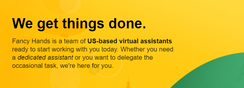 تعتبر الخصائص الرئيسية لهذه المنصة التي تسمى Fancy Hands هي السرعة ، وبأسعار معقولة ، والموجهة نحو النتائج. لديها فريق من المساعدين الافتراضيين المقيمين في الولايات المتحدة والذين يمكنك توظيفهم لمشاريع جارية أو حتى مهام لمرة واحدة.