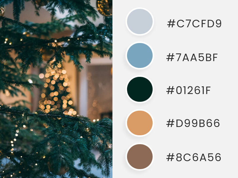 # C7CFD9 | # 7AA5BF | # 01261F | # D99B66 | # 8C6A56