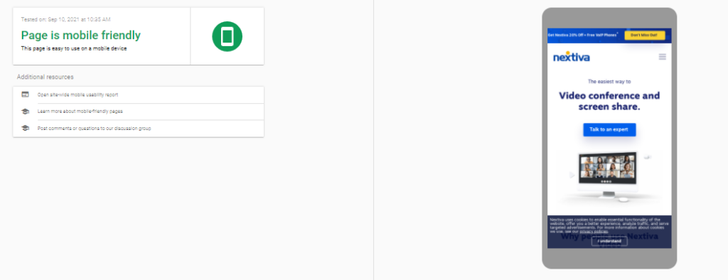 Sehen Sie sich an, was passiert, wenn ich die URL dieser Seite von Nextiva in den mobilfreundlichen Test einfüge: