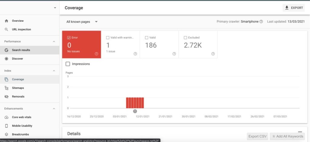 Neben Mobilgeräten können Sie auch andere Website-Probleme über GSC über die Registerkarte „Abdeckung“ identifizieren. Über diese Registerkarte können Sie Probleme wie 5xx-Serverfehler identifizieren. Sie können Probleme beheben, die Google über GSC identifiziert hat.