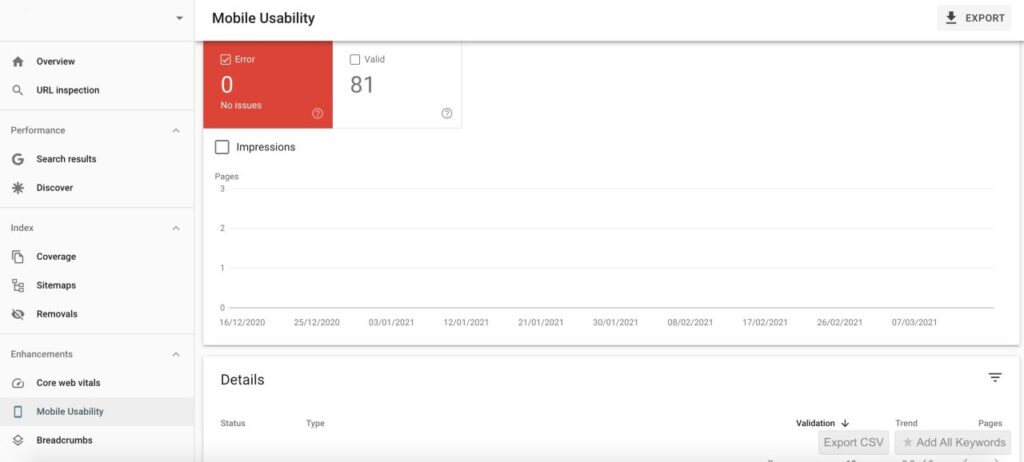 GSC verfügt über ein Dashboard, das Problemen mit der mobilen Benutzerfreundlichkeit gewidmet ist. Das Dashboard bietet Lösungen zur Behebung von Problemen mit mobilen Seiten und AMP.