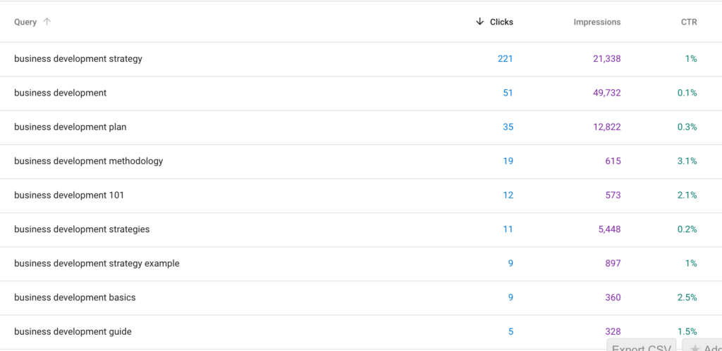 Ihr Ziel sollte es sein, die relevantesten Begriffe mit den höchsten Impressionen und der geringsten Anzahl an Klicks zu identifizieren. Sobald Sie einen relevanten Begriff gefunden haben, können Sie Ihre Meta-Beschreibung anpassen.
