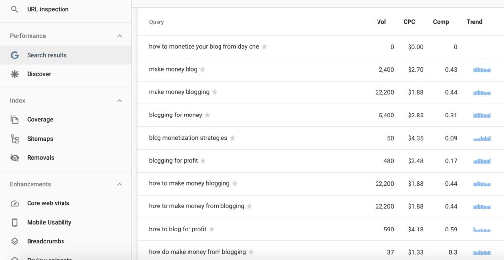 Lassen Sie mich Ihnen ein Beispiel für einen populären Begriff geben, auf den viele Menschen in der Marketingbranche abzielen könnten; „wie man mit bloggen geld verdient“