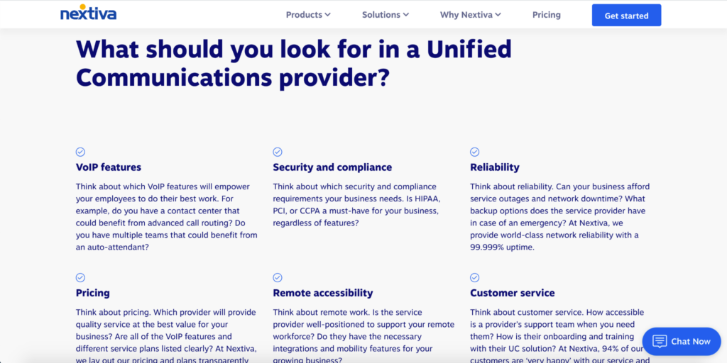 Diesen Ansatz verfolgen wir bei unseren Verkaufsseiten immer. Wie Sie beispielsweise auf unserer Unified Communications-Seite sehen können, beginnen wir mit einer Definition des Begriffs.
