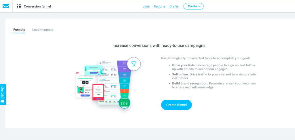 Funktionen wie E-Mail-Marketing-Integration, Zielseiten und Autoresponder ermöglichen es Ihnen, notwendige Aufgaben zu automatisieren und effektive Marketingkampagnen durchzuführen. Andererseits eignen sich die erweiterten Analysen von GetResponse hervorragend zum Verfolgen von Leads, Conversions und ROI.