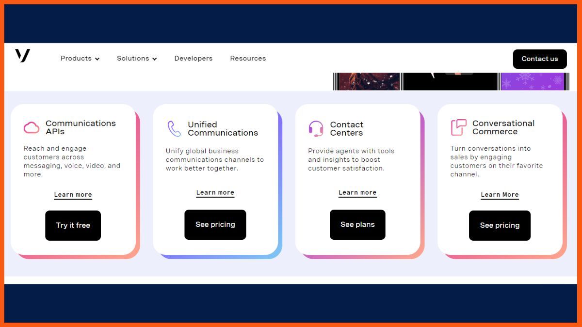 Darüber hinaus ist eine mobile Self-Service-Anwendung verfügbar, die sowohl mit Android als auch mit iOS kompatibel ist und es Ihnen ermöglicht, Apps von Drittanbietern bereitzustellen, ohne professionelle Dienste zu benötigen. Vonage bietet eine breite Palette von Dienstleistungen wie Kontaktzentren, Kundenbindung, Mobilität, Fernarbeit und mehr.