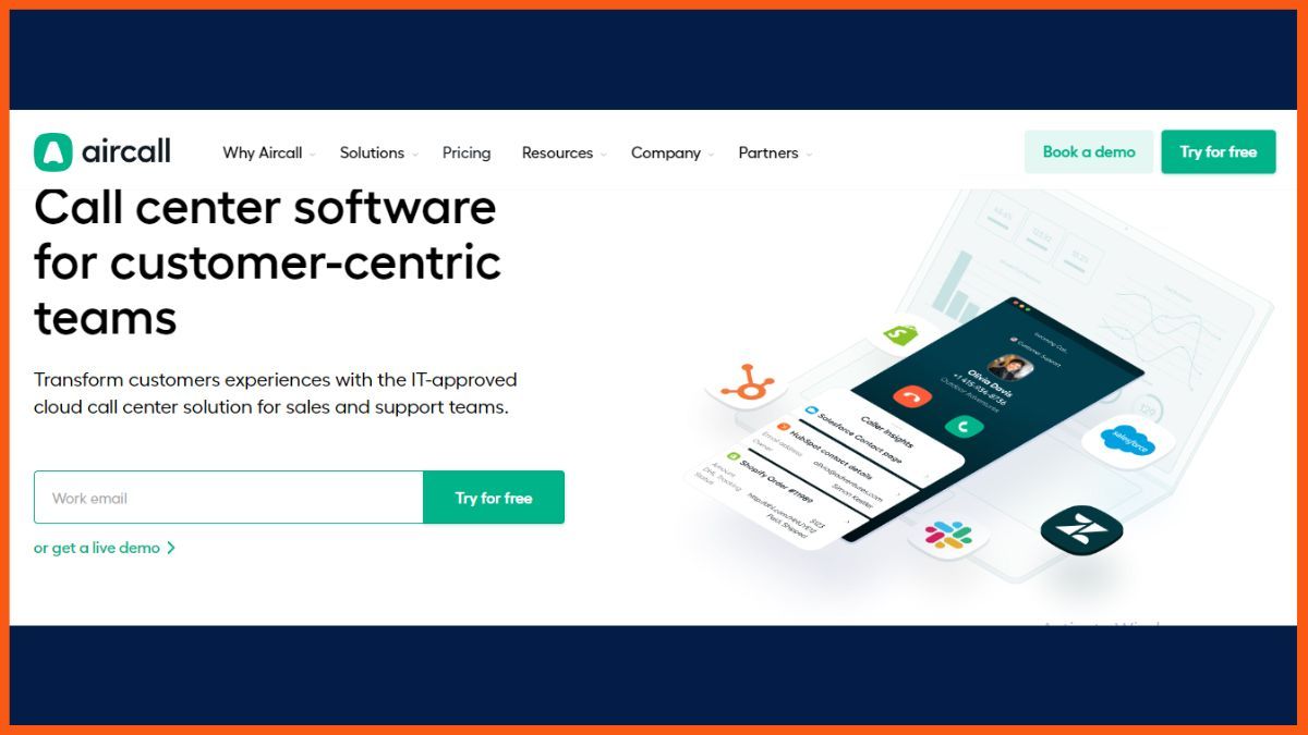Aircall ist eine Cloud-basierte Auto-Attendant-Software, die sich perfekt für E-Commerce-Unternehmen eignet und es ihnen ermöglicht, ihr Call Center entfernter und effizienter zu gestalten. Es handelt sich um eine von der IT zugelassene, cloudbasierte Lösung, die sich ideal für Vertriebs- und Marketingteams eignet.