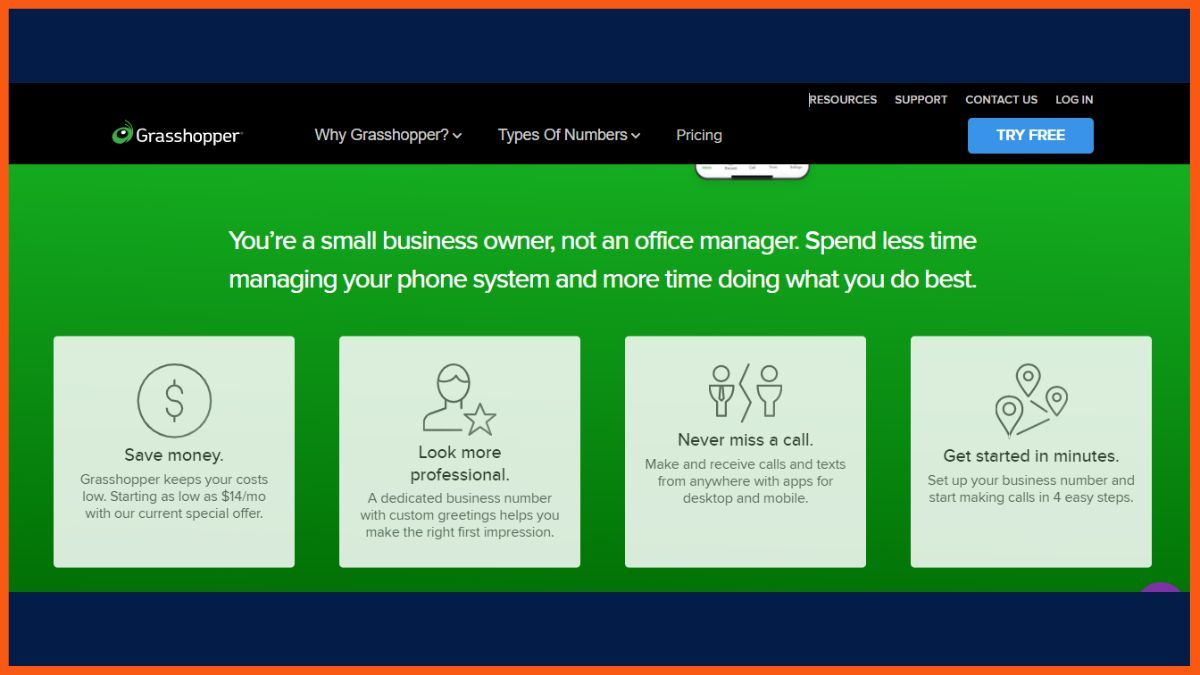 Sie können verschiedene Skripte für verschiedene Client-Pfade zuweisen, um Ihre eingehenden Anrufe professioneller zu beantworten. Gegen eine zusätzliche Gebühr bietet die Software auch ein professionelles Sprachstudio. Die Software von Grasshopper ermöglicht es Ihnen, je nach Ihren Vorlieben zwischen Live-Operatoren und digitalen Rezeptionisten zu wechseln, sodass Sie flexibel entscheiden können, wer Ihre Anrufe bearbeitet. Grasshopper bietet einen einfachen 4-Schritte-Prozess zum Hinzufügen einer Geschäftsnummer und zum Integrieren Ihres Smartphones in ein virtuelles Telefonsystem, sodass Sie keinen Anruf verpassen und Ihren Kunden ein professionelles Image präsentieren können.