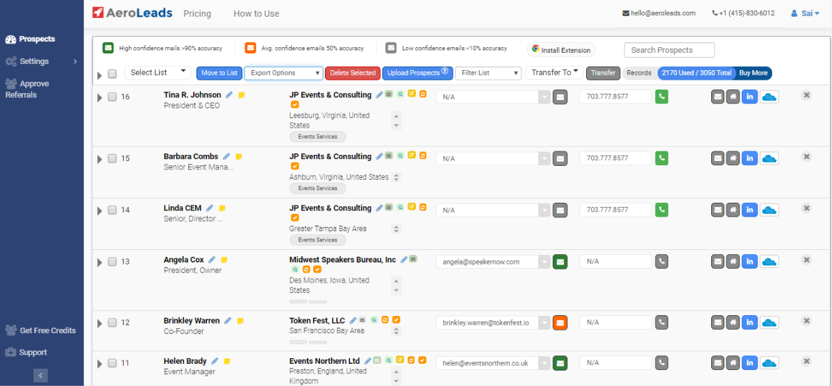 AeroLeads ist ein weiteres hervorragendes LinkedIn-Automatisierungstool für digitale Vermarkter. Es ermöglicht Ihnen, eine umfassende E-Mail-Liste für Verkaufs- und Marketingpläne zu erstellen.