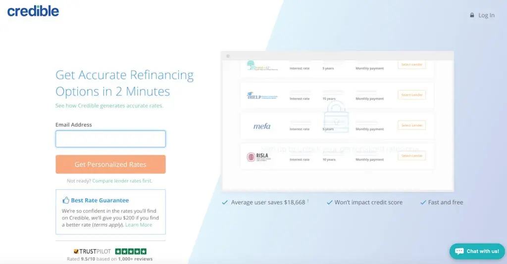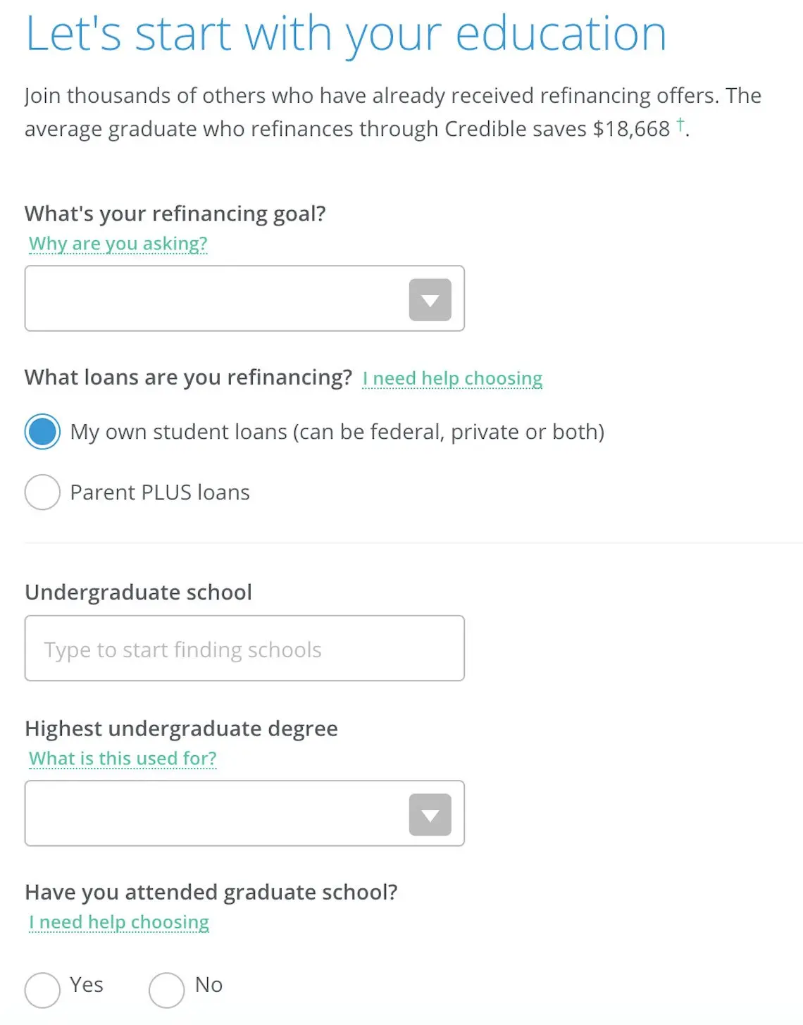 Einige Unternehmen wie Credible, LendKey und Student Loan Hero machen es einfach, Angebote bei mehreren Refinanzierungsanbietern gleichzeitig zu prüfen. Ich zeige Ihnen, wie dieser Prozess abläuft, beginnend mit Credible.