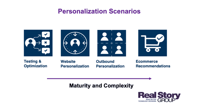 - RSG verwendet diese als Modellszenarien für die Bewertung von Anbietern, einschließlich Personalisierungsplattformen. Bei Ihren eigenen Bemühungen zur Technologieauswahl sollten Sie jedoch Ihre eigenen einzigartigen Anwendungsfälle spezifizieren, anhand derer Sie Anbieter testen können.