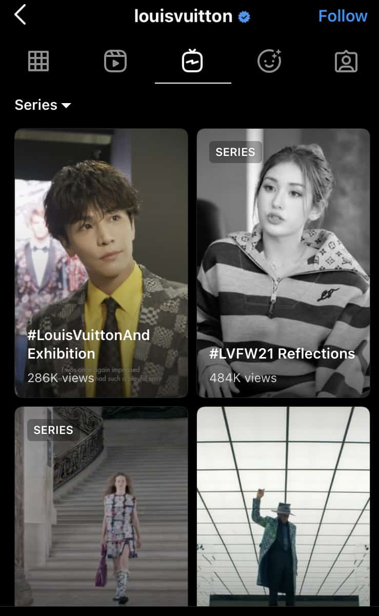 La marca de moda de lujo Louis Vuitton ha creado varias series en curso utilizando IGTV.
