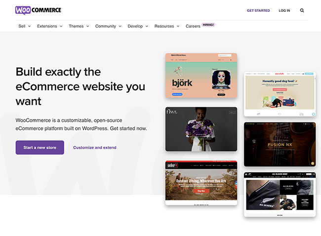 WooCommerce es ligeramente diferente de las otras alternativas de Wix en esta lista porque no es un creador de sitios web independiente. En cambio, es un complemento diseñado para usarse junto con Wordpress CMS. WooCommerce es un complemento de código abierto totalmente personalizable que se puede agregar a cualquier sitio de Wordpress para expandir su funcionalidad e incorporar características avanzadas y extensas de comercio electrónico.
