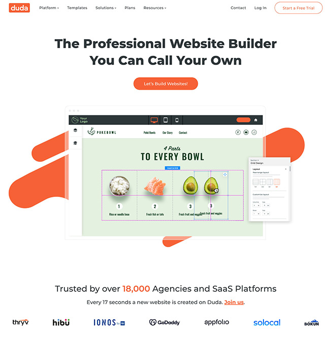 Si la simplicidad, la escalabilidad y el enfoque en una estética de diseño limpia y profesional son importantes para usted, entonces Duda es el creador de sitios web profesional que ha estado buscando. Con más de 100 plantillas adaptables, optimizadas para dispositivos móviles y escalables, Duda es la alternativa Wix perfecta si está buscando crear un sitio web comercial.