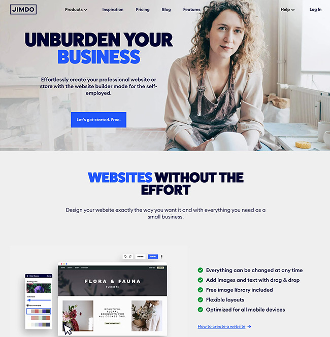 Jimdo es una de las mejores alternativas económicas de Wix si está buscando algo que ofrezca muchas de las mismas funciones que Wix a un precio más asequible. Si bien no es tan versátil y algo más limitado en términos de alcance y escala, Jimdo es definitivamente una alternativa a Wix que debe consultar si la asequibilidad es su principal preocupación.