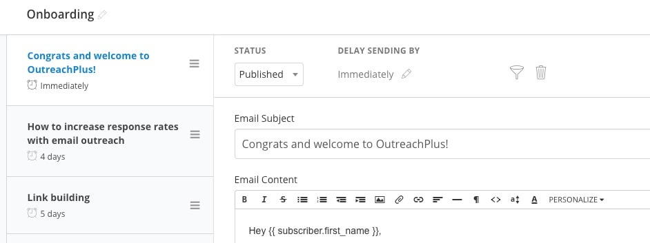 Cuando agregue personas a su lista, naturalmente querrá enviarles algunos correos electrónicos. La forma más eficiente de enviar correos electrónicos a las personas adecuadas en el momento adecuado es configurar secuencias de correos electrónicos.