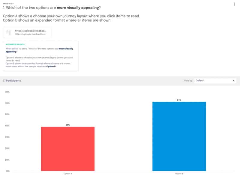 “Personalmente, me gusta interactuar con los sitios web de esa manera, y pensé que otras personas también lo harían”, dijo Baker. Utilizaron la plataforma Feedback Loop para probar su hipótesis de que los usuarios preferirían una experiencia más limpia que los alentara a hacer clic para obtener la información específica que querían.