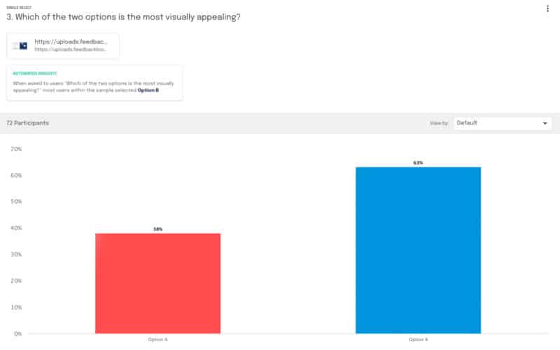 Para la próxima iteración del anuncio, dirigida a los especialistas en marketing, Baker probó tres conceptos con la plataforma Feedback Loop: uno con dibujos animados, otro con capturas de pantalla y otro con una combinación de ambos. La tercera opción, una combinación de estilos, fue elegida por el 46% de los encuestados, por lo que ese es el anuncio que lanzarán.
