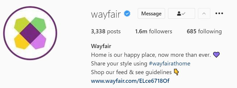 Cuando se trata de hashtags en tu biografía de Instagram, menos es más. Cuando corresponda, use hashtags específicos de nicho o de marca que se relacionen con su propuesta de valor o invite a su audiencia a interactuar con su marca.