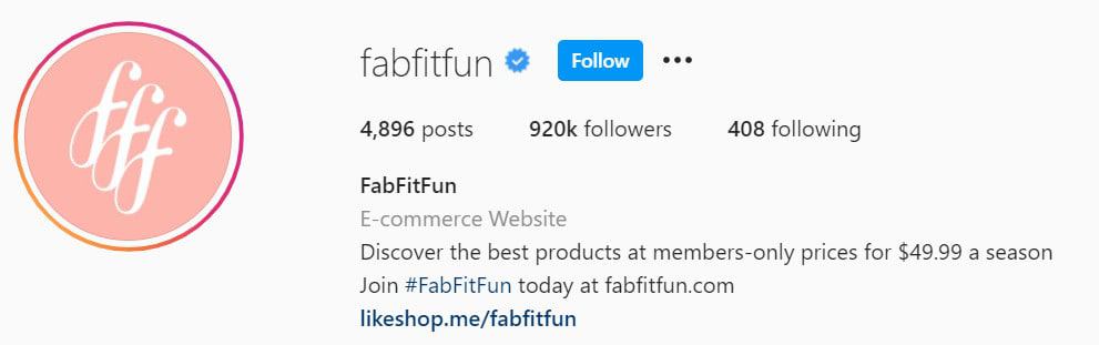 Aquí hay un ejemplo de una biografía de Instagram que contiene la categoría de comercio electrónico: