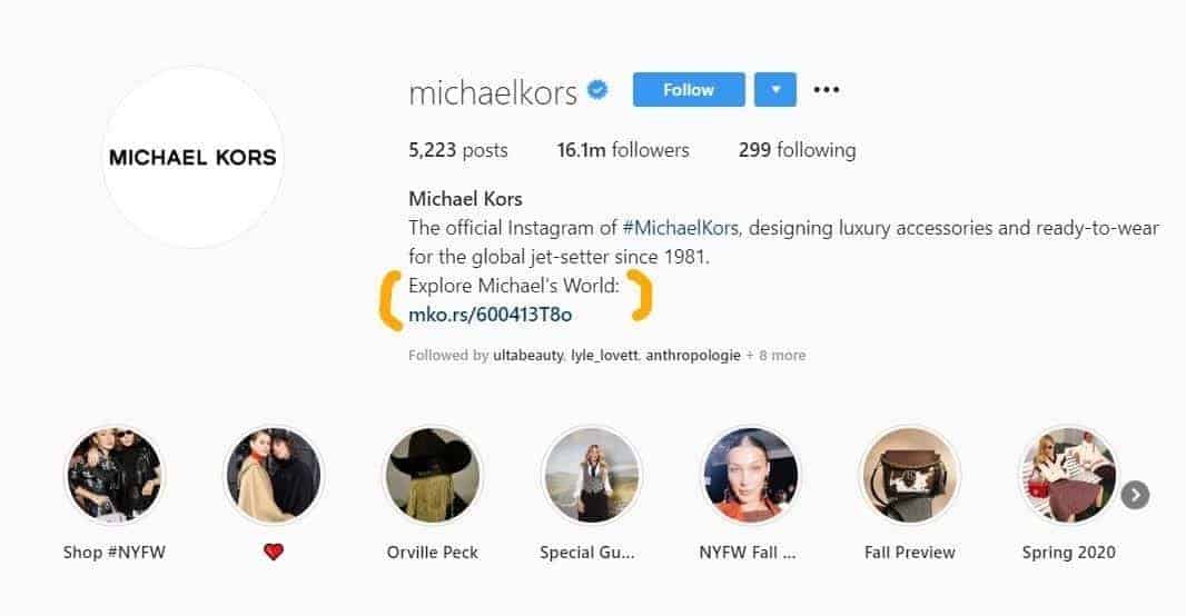 Afortunadamente, Instagram te permite incluir un enlace en el que se puede hacer clic en tu biografía. Asegúrese de aprovechar esta oportunidad para llevar a la gente a su sitio web. Su enlace debe ser corto, conectado a su marca cuando sea posible (por ejemplo, www.macys.com) y evitar demasiados números o letras que lo hagan parecer spam.