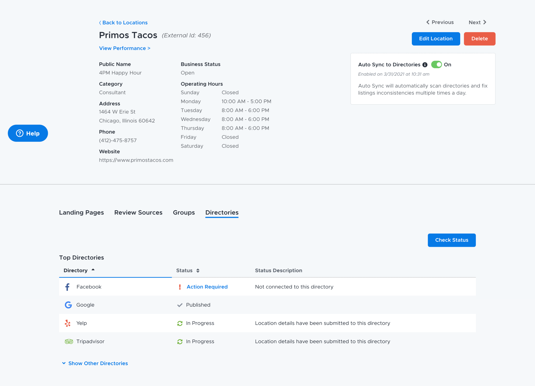 ¿Administra varias ubicaciones comerciales? Una solución de administración de listados locales garantiza listados consistentes para su marca y brinda la capacidad de generar reseñas en todos los directorios y sitios de reseñas importantes.