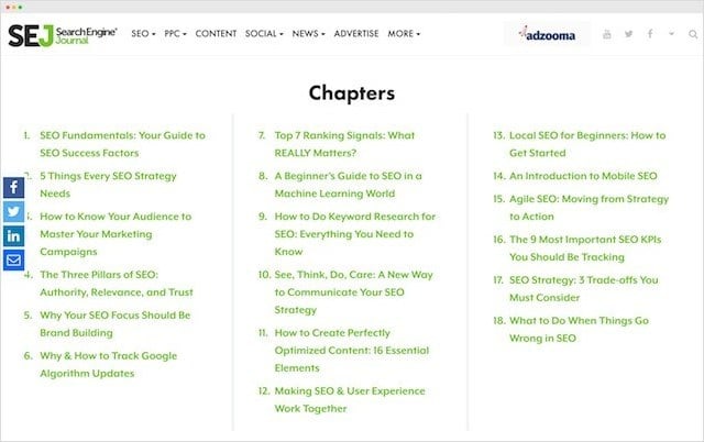 Si bien algunos sitios web muestran el contenido completo de su guía en su sitio, otros solo brindan un vistazo de la guía completa al resaltar un capítulo o sección en particular antes de solicitarle que complete un formulario de registro (para la generación de clientes potenciales) para obtener acceso a un libro electrónico. o PDF de la guía.