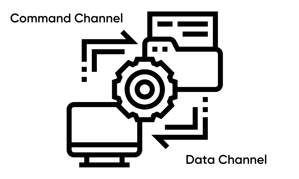 El canal de datos utiliza un puerto temporal bajo demanda que escucha en el servidor (modo pasivo) o en el cliente (modo activo). Este canal es responsable de compartir datos reales entre el servidor y el cliente en forma de listas de directorios y transferencias de archivos.