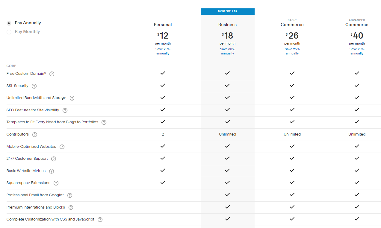 El precio de Squarespace se encuentra en algún lugar en el promedio medio-alto entre sus competidores.