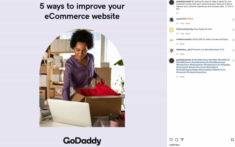 Por ejemplo, echa un vistazo a la publicación de Instagram de GoDaddy para ver cómo hacen su copia en las redes sociales.