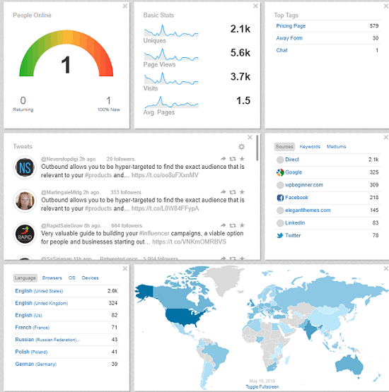 Puede monitorear a los visitantes en tiempo real, ver en qué páginas están, hacia dónde están navegando e incluso dónde están los movimientos del mouse.