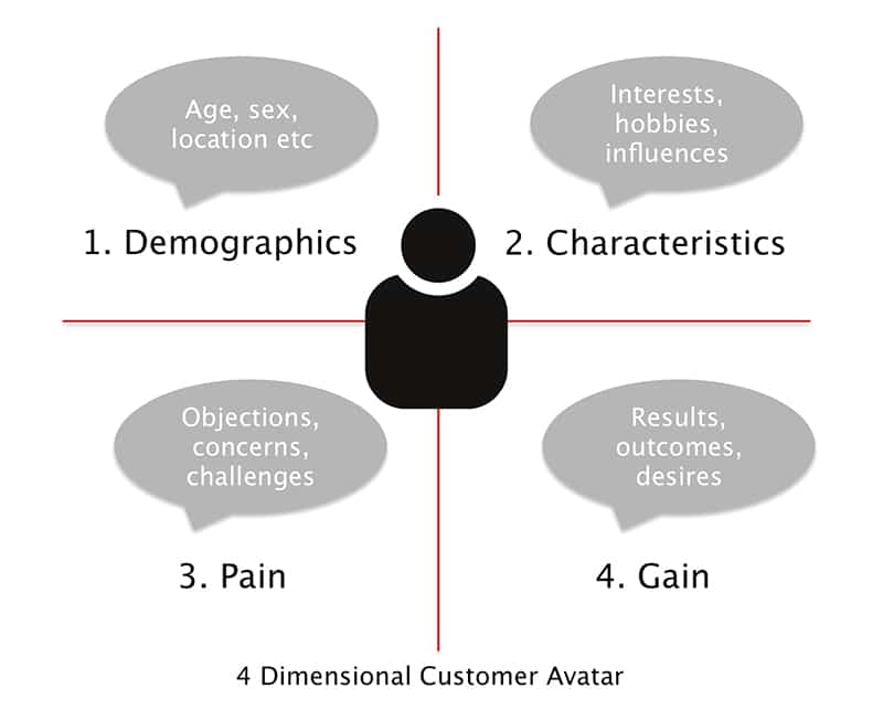 Por lo tanto, un avatar puede ser tanto masculino como femenino, joven y viejo, de altos ingresos y de bajos ingresos. Un avatar se centra en las características compartidas y más destacadas de su mercado objetivo.