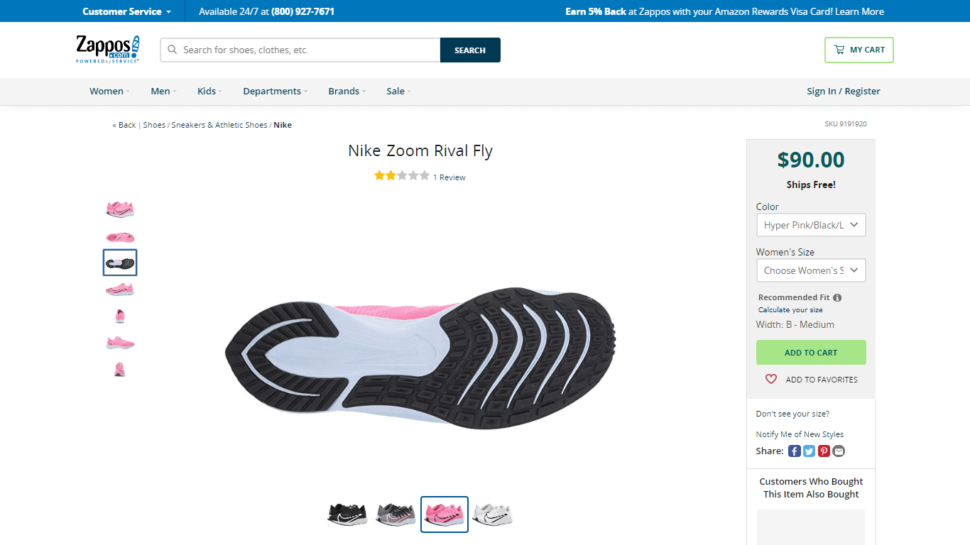 Zappos muestra claramente las partes más importantes de los productos.