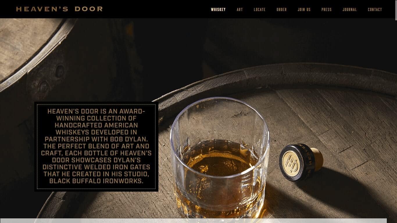 En solo unas pocas palabras, Heaven's Whiskey les dice a los visitantes cómo se crea su whisky y de dónde vino la inspiración para el diseño de la botella.
