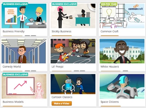 Go Animate es una herramienta perfecta para crear videos animados de calidad con un presupuesto ajustado. Le permite construir su video escena por escena agregando personajes, escenas y accesorios con un editor de arrastrar y soltar fácil de usar.