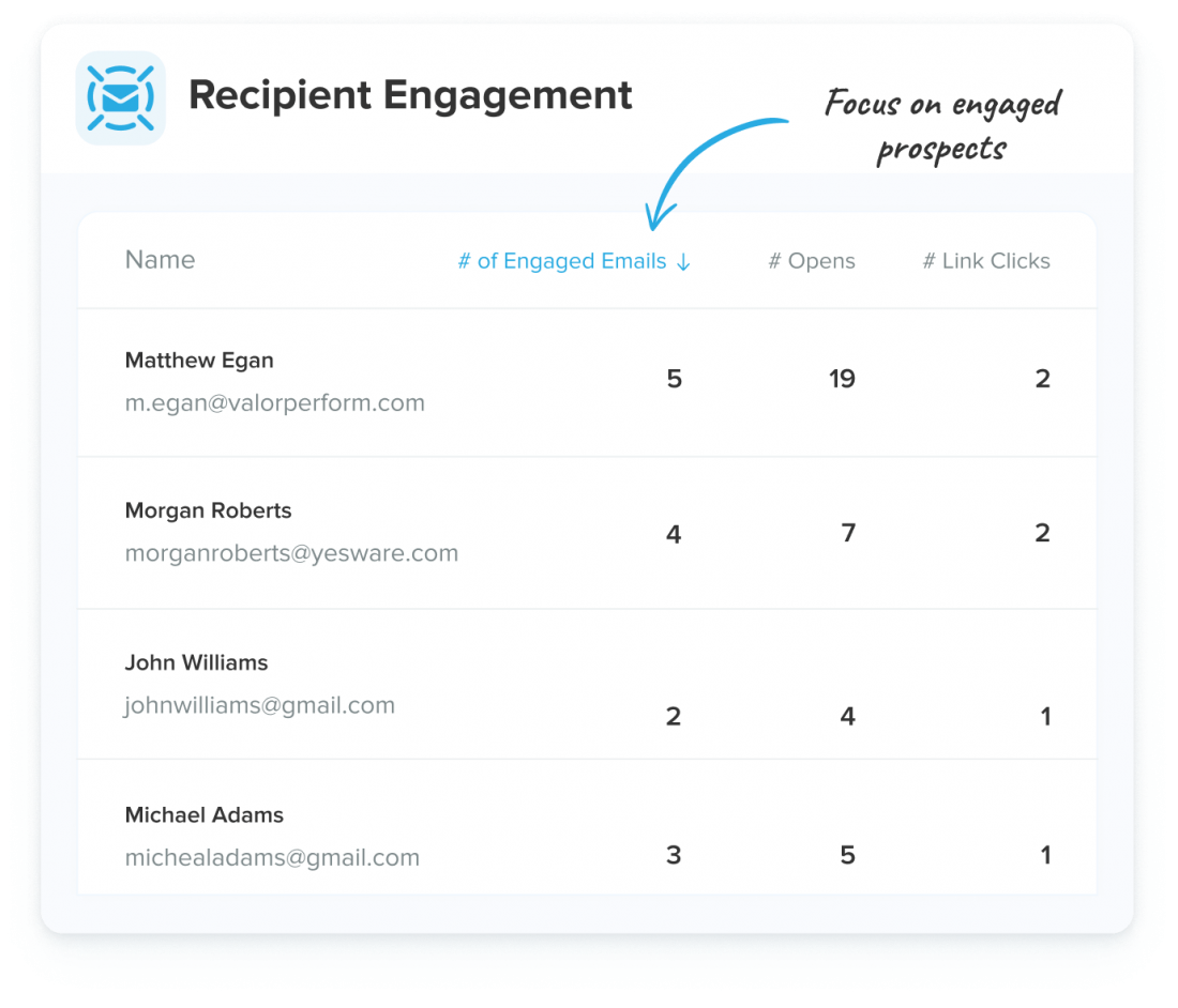 Yesware est la boîte à outils de vente et le logiciel de messagerie tout-en-un qui facilite les campagnes de sensibilisation. L'outil permet une diffusion facile par e-mail pour générer des revenus sans modifier l'ensemble du processus. Il dispose d'un ensemble d'outils robustes qui permettent à l'équipe de tester rapidement le plan, de suivre l'activité de diffusion par e-mail et d'obtenir de meilleurs résultats.