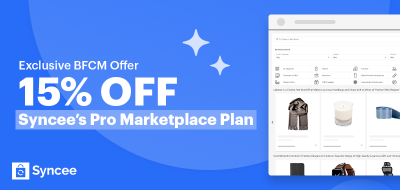 Offre spéciale sur l' application BFCM Shopify : 15 % de réduction sur le plan PRO Marketplace de Syncee. Pour réclamer l'offre, rendez-vous dans le menu Facturation de Syncee et utilisez le code promo ' SYNCEE_BFCM15 '.