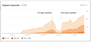 Mais ce n'est pas parce que cela a été le statu quo que cela restera ainsi. La mise à jour Medic en 2018 s'est rapprochée de l'impact généralisé des mises à jour du début des années 2010 (c'est la mise à jour qui a fait d'EAT un nom familier parmi les webmasters) et les mises à jour d'algorithmes de base continuent depuis lors d'avoir de gros impacts.