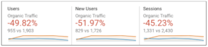 La raison pour laquelle les gens se soucient tant des mises à jour des algorithmes n'est un secret pour personne - ils peuvent faire ou défaire la fortune de votre site Web en matière de trafic organique. Ils sont aussi proches d'un « acte de Dieu » que vous pouvez obtenir dans le marketing numérique. Un jour, vous pourriez avoir du mal à tirer le trafic. La suivante, vos données Analytics ressemblent à ceci :