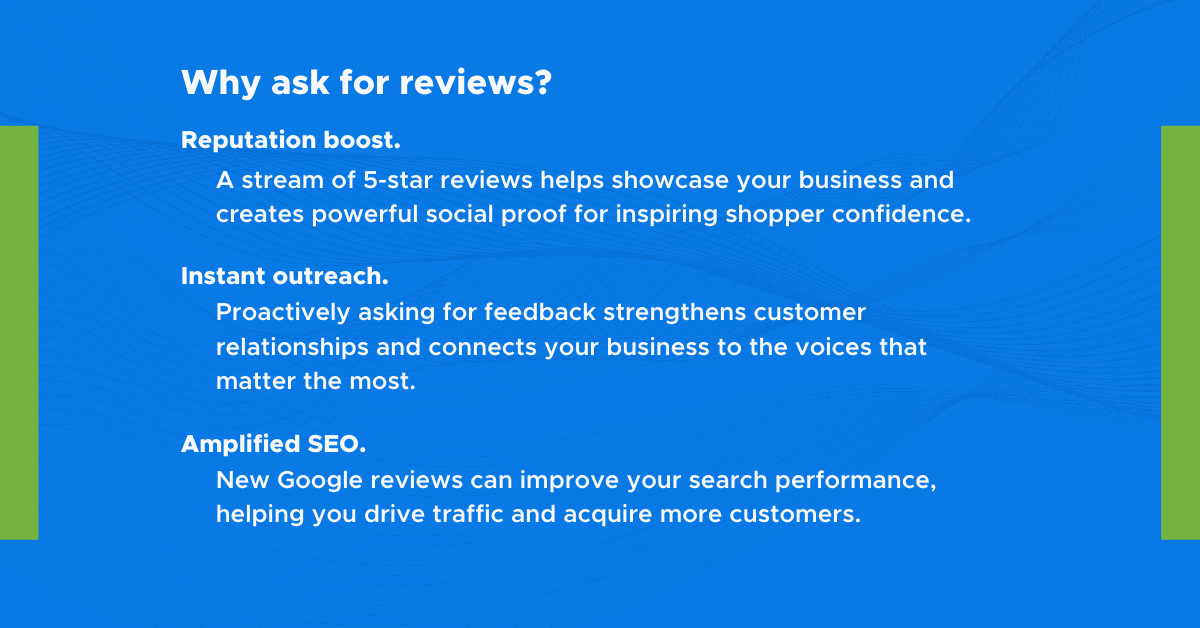 Pour obtenir des conseils, consultez Google Reviews : The Complete Guide for Businesses . Vous pouvez également lire notre article de blog sur les moyens efficaces d' obtenir des avis Google .