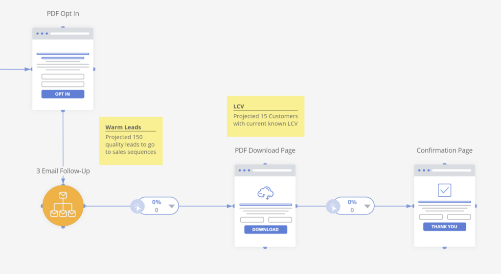 - Exécutez des projections sur les conversions et les revenus : même avant la mise en ligne de la campagne, vous pouvez exécuter une simulation complète des revenus prévus en fonction de votre taux de conversion attendu à chaque étape de l'entonnoir. Il s'agit d'une fonctionnalité très importante pour les agences qui peuvent montrer visuellement le retour sur investissement prévu qu'elles peuvent atteindre dans une campagne.