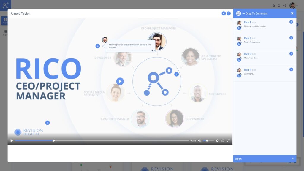 - Collaboration image et vidéo : dans MarketPlan, vous pouvez créer et résoudre des commentaires directement sur des images et des vidéos, ce qui offre un niveau de surveillance sans précédent sur vos ressources de médias marketing.