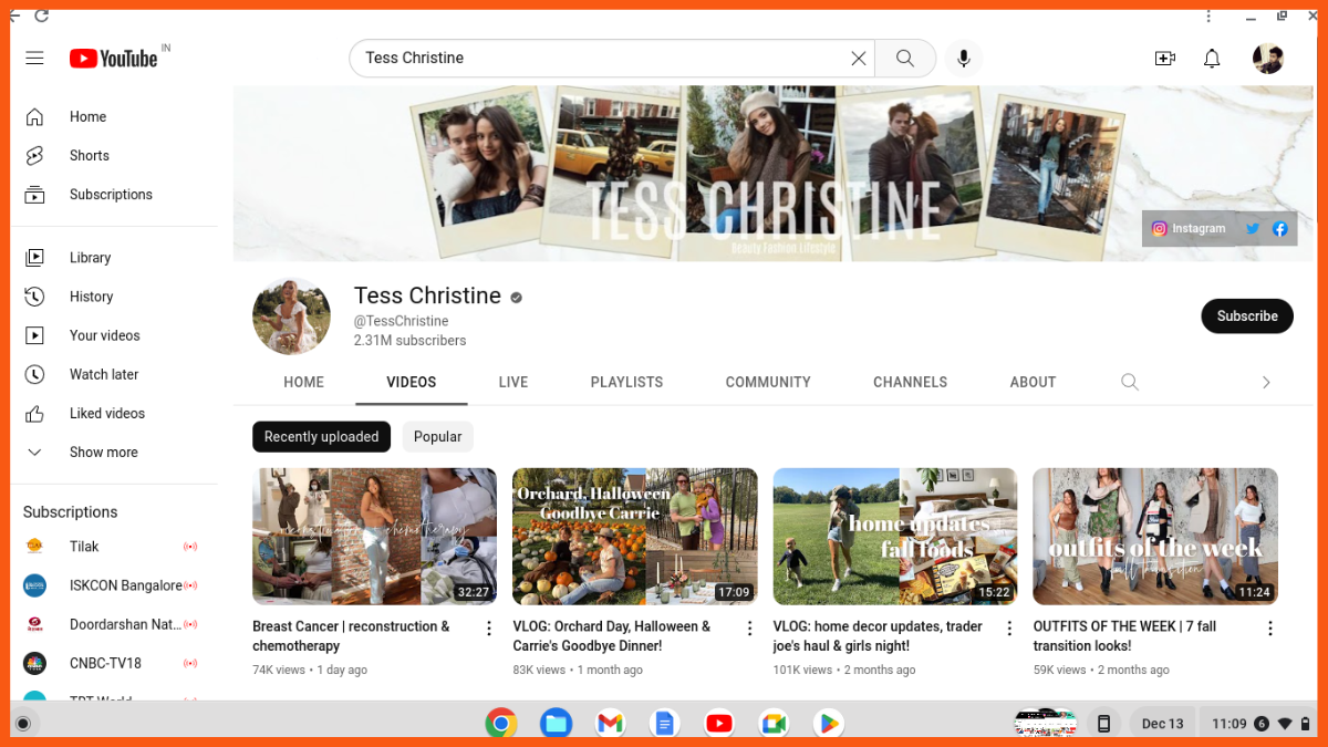 La plus grande chaîne YouTube de mode : Tess Christine / 2,31 millions d'abonnés