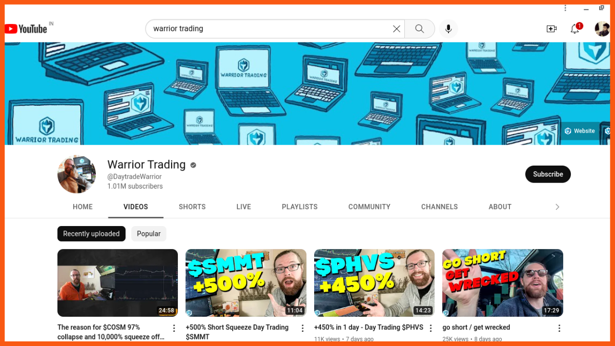 La plus grande chaîne YouTube d'investissement et de trading : Warrior Trading / 1,1 million d'abonnés