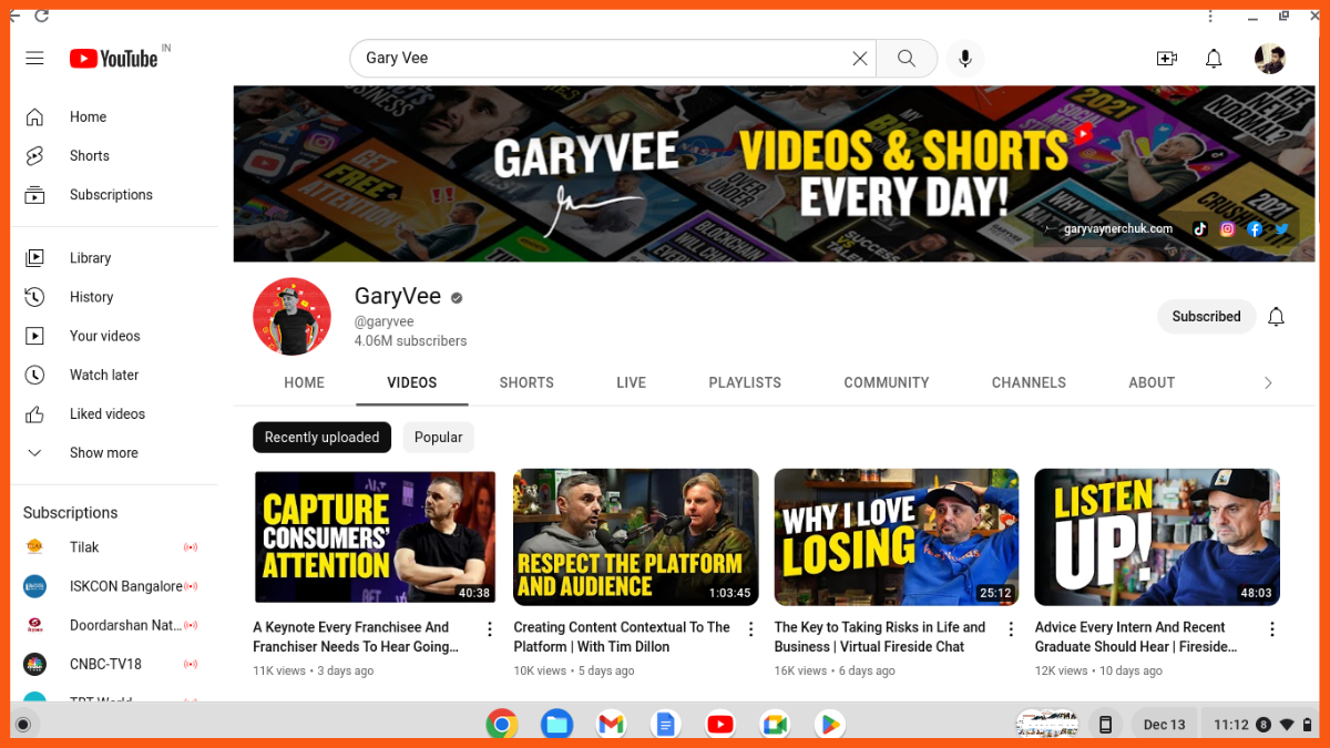 Chaîne YouTube la plus importante pour les entreprises : Gary Vee / 4,06 millions d'abonnés