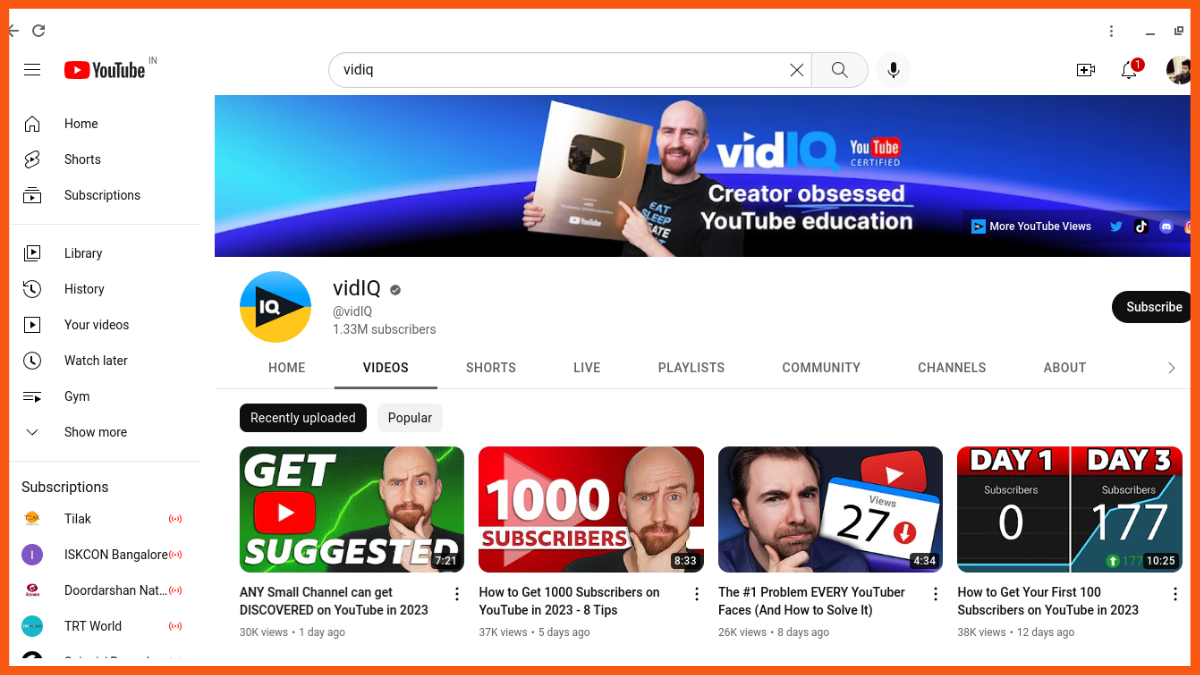 La plus grande chaîne YouTube de marketing numérique : VidIQ / 1,33 million d'abonnés